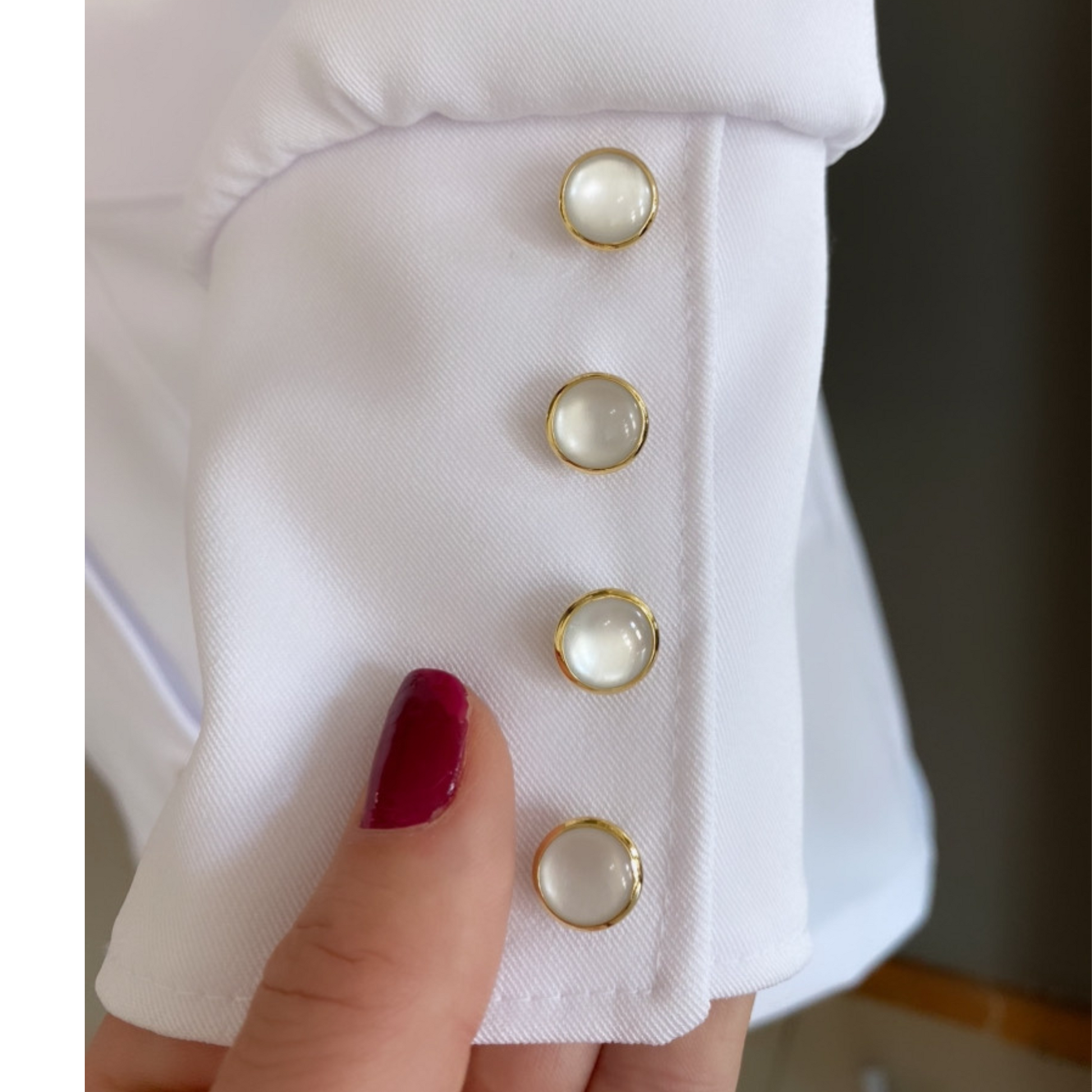 💛 Punhos largos com 4 botões pequenos em metal dourado com madrepérola