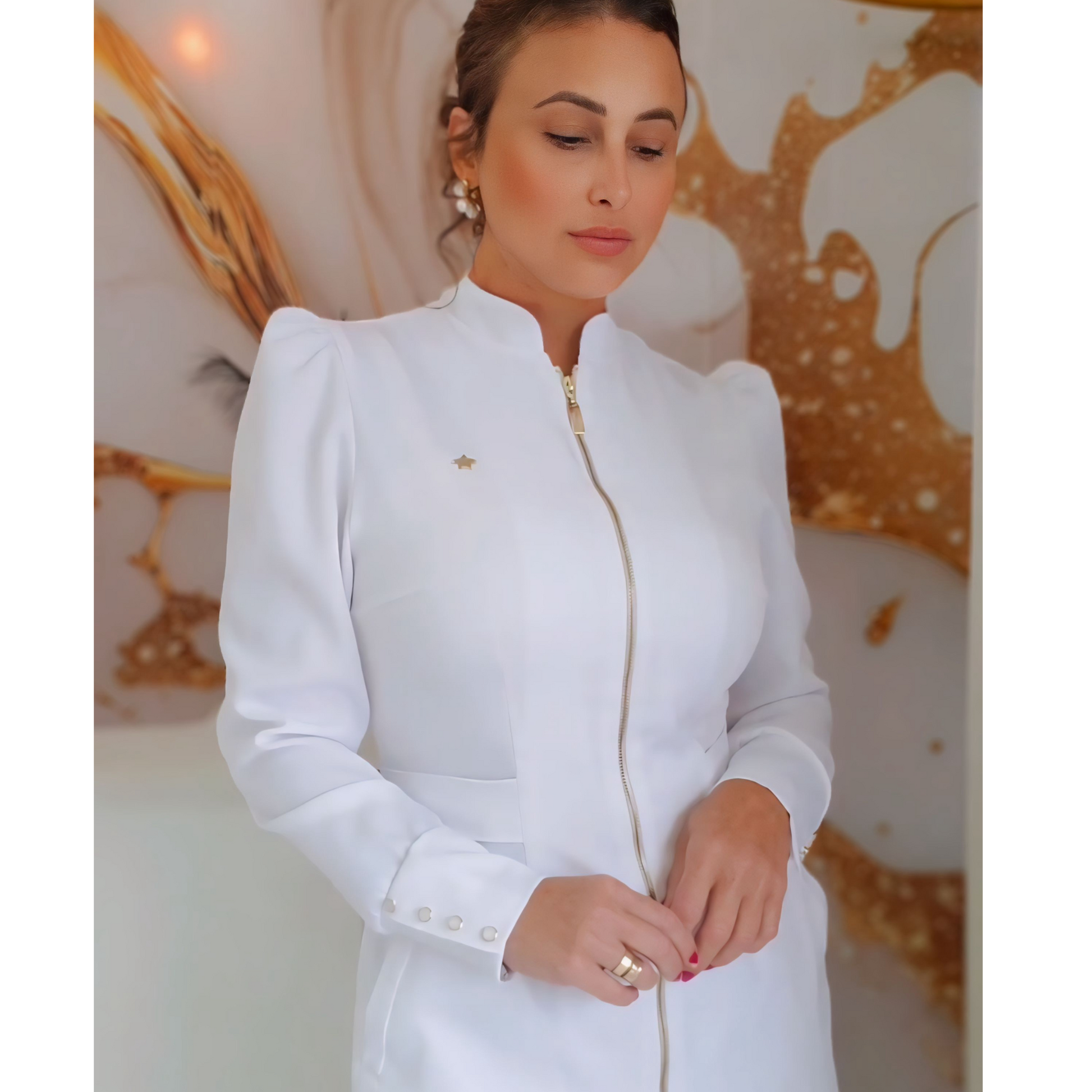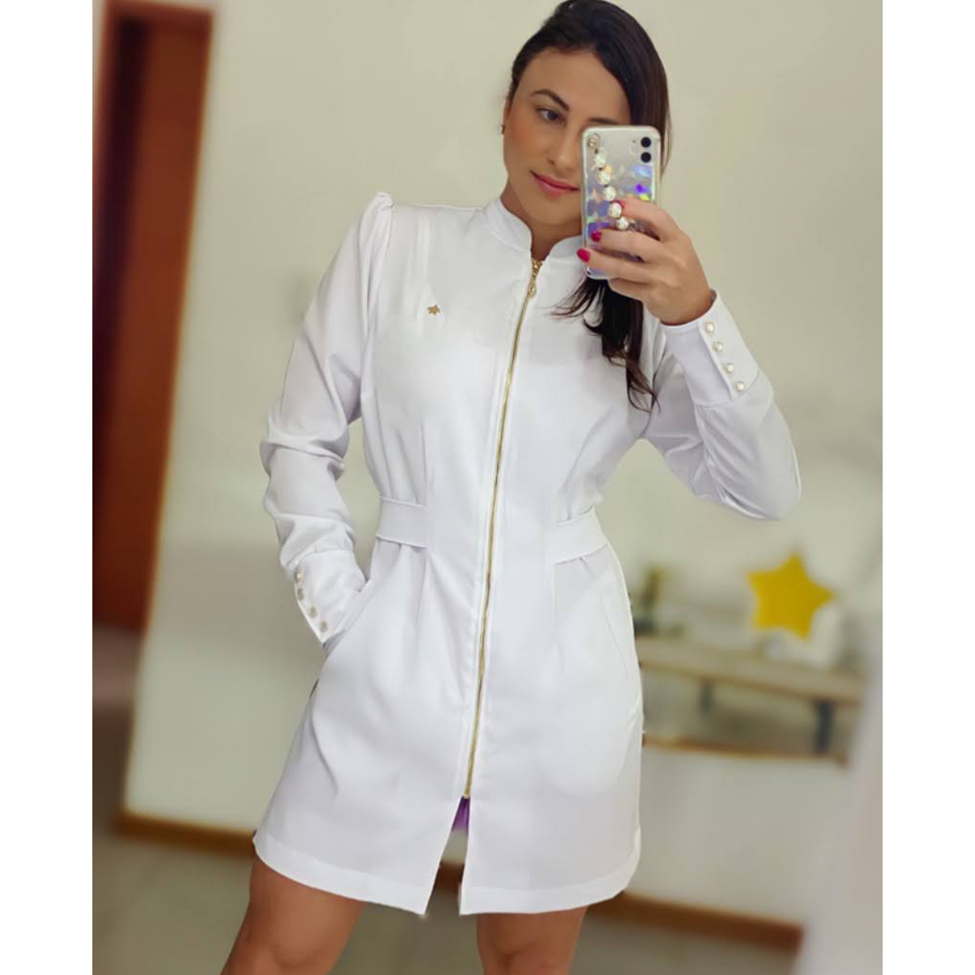 O Jaleco Sofia é a escolha certa para quem busca um look moderno e sofisticado. Com corte acinturado e cinto ajustável, ele modela e define a silhueta para criar um look único. Seu tecido de alta qualidade é extremamente leve e confortável. Além disso, ele é romântico, delicado e alegre! Seu estilo é garantido!